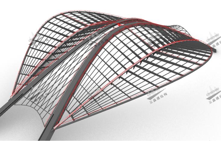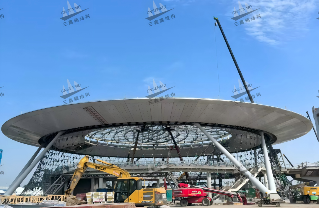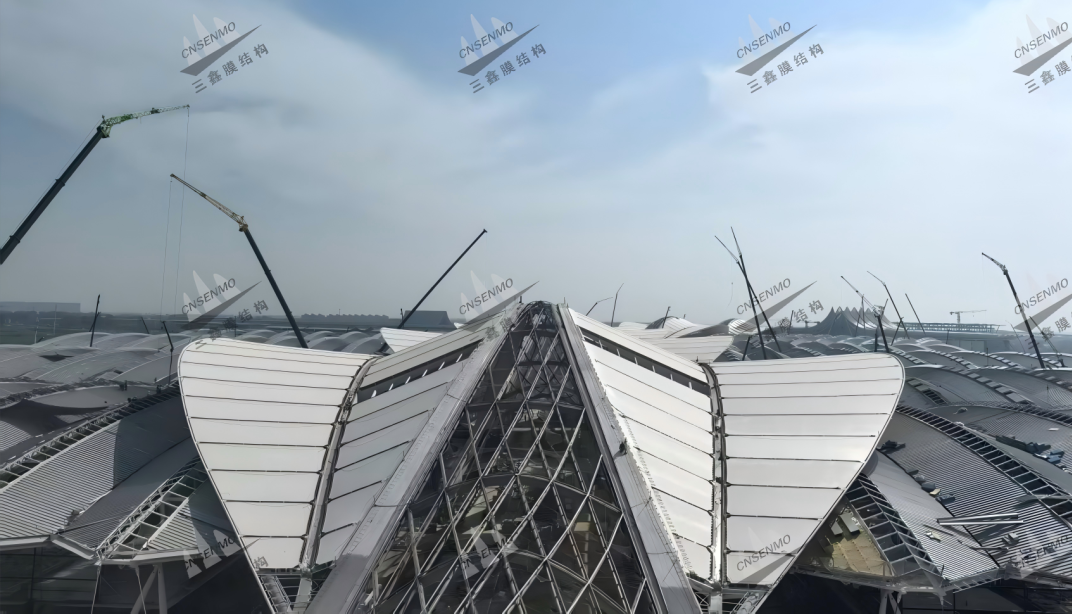 “嵩风不折,劲骨藏柔。”本项目膜结构屋面为多系统融合结构,结构复杂、节点密布、空间造型多变,施工难度极高。其中,三大关键挑战尤为突出: