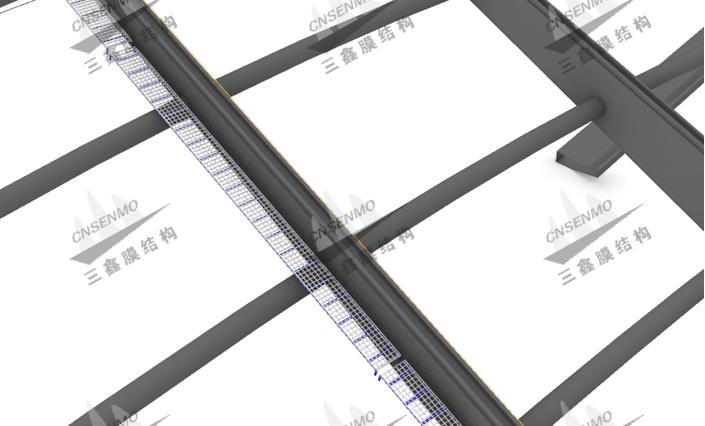 其一,结构系统交错叠合,节点密集且缝隙微小,膜片与钢构精准协调难度高。团队依托BIM建模,精准定位节点坐标与加工参数,确保每块膜材在空间中严丝合缝。